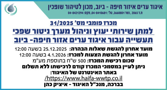 מכרז פומבי – למתן שירותי יעוץ וניהול מערך ניטור שפכי תעשייה עבור איגוד ערים אזור חיפה- ביוב