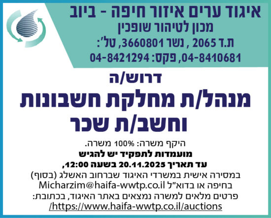 מכרז כח אדם – פומבי מס' 24/2025 – מנהל/ת מחלקת חשבונות וחשב/ת שכר
